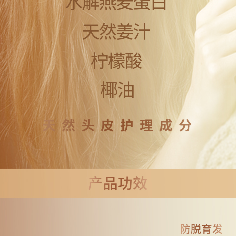 第二點(diǎn),生姜洗發(fā)水中的生姜成分連同其他重要成分能夠深入毛囊,為黑發(fā)再生提供充足的