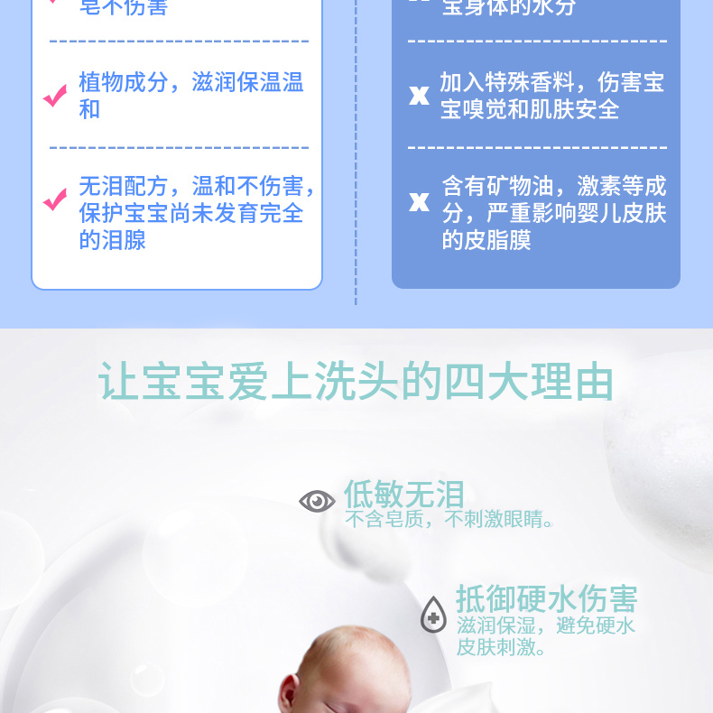 同時也能更好地清潔皮膚,含有無淚配方的嬰幼兒洗發(fā)露不僅對眼睛沒有任何刺激,還能有效保護(hù)頭