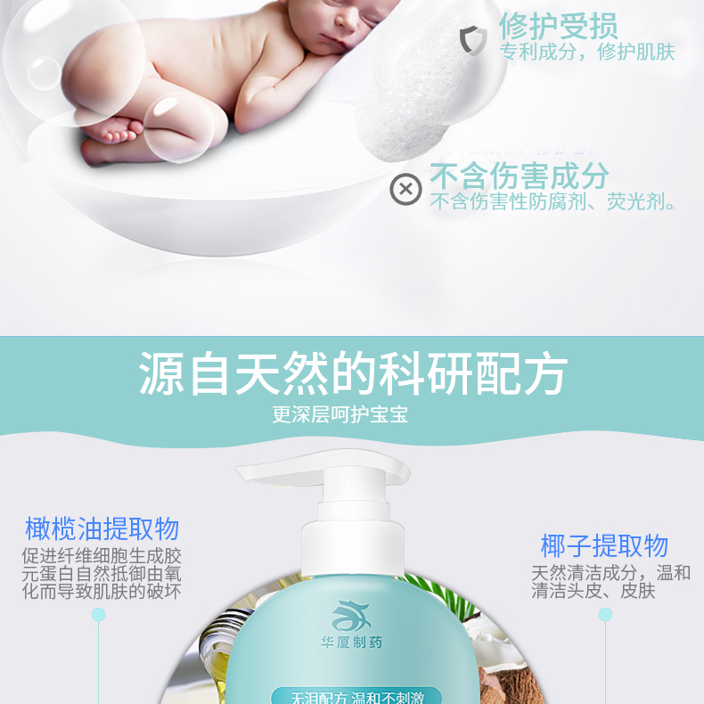 華廈牌嬰幼兒洗發(fā)露采用無硅油無淚配方,呵護(hù)寶寶肌膚皮脂,溫和護(hù)理幼嫩肌膚。其添加植物