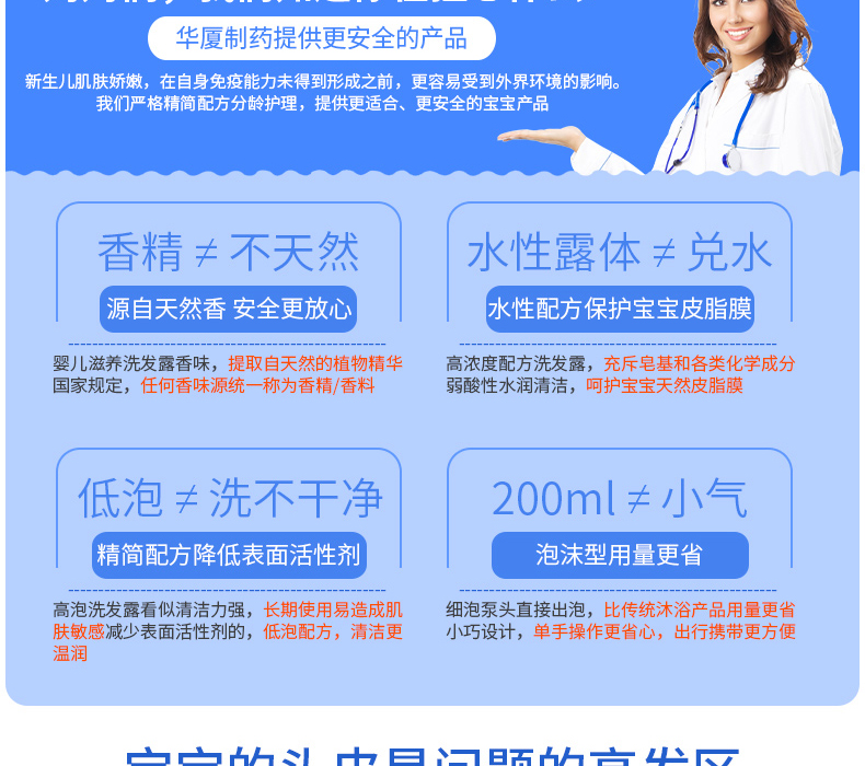 其實不僅僅是嬰幼兒應(yīng)該選擇無淚配方的洗護產(chǎn)品,我們成人也同樣需要細心呵護,也許你長大了,不會再像個孩子一樣會將洗發(fā)水沐浴乳弄到眼睛里,造成不適感,然后抗拒洗澡,會哭會鬧,我們大人有更多的忍耐力,所以是否無淚很多人并不是那么看重,其實無淚產(chǎn)品不僅僅是體現(xiàn)洗浴過程中的舒適度,還是對我們健康的一個保障,所以華廈生物制藥認為選擇一款無刺激不傷眼的產(chǎn)品就成為關(guān)鍵之中的關(guān)鍵,畢竟健康才是最重要的。華廈生物制藥的洗護產(chǎn)品,全部以安全健康舒適為研發(fā)標準,研發(fā)生產(chǎn)的洗發(fā)水、沐浴乳中均為,天然安全保濕鎖水無淚配方,大人孩子都能使用。