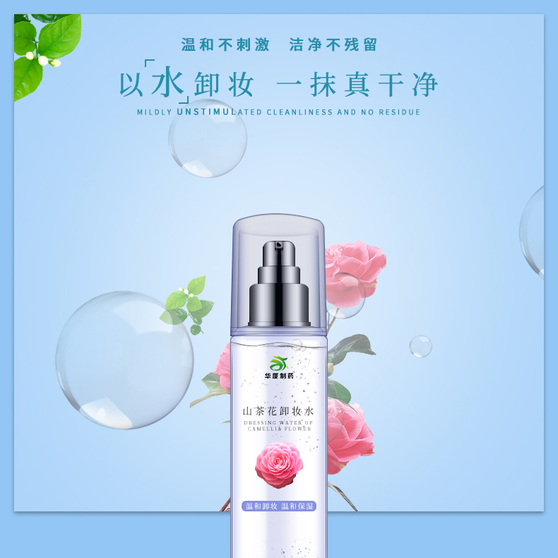 山茶花卸妝水由廣州華廈生物制藥有限公司出品,內(nèi)含水溶及油溶份子可全面洗凈肌膚毛孔內(nèi)外污垢,再加上山茶花植物精華,用後絕不繃緊。成份簡(jiǎn)單,不含香料,敏感肌膚亦可使用.