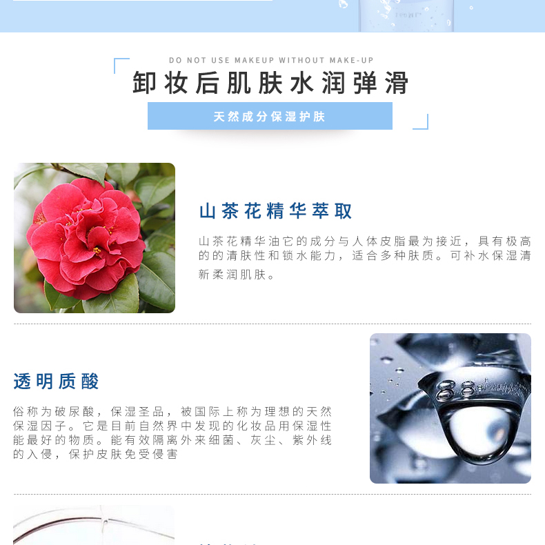 山茶花卸妝水不含皂基,PH值5,呈弱酸性,改善皮脂氧化變硬,阻塞毛孔等油性問(wèn)題肌膚狀況。