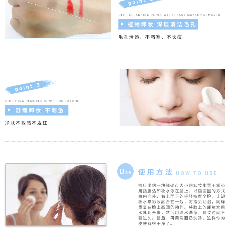 山茶花卸妝水特有水溶及油溶份子,可溶解面上及毛孔內(nèi)的的污垢。 感覺得到的毛孔乾凈 天然山茶花植物精華趕走潔面後的繃繃緊。水般的清爽質(zhì)感 如水般的清爽質(zhì)感,沒有一般潔膚油或那種笠黏黏感覺。通過(guò)水潔膚程序將只需倒適量在潔膚棉上後,往面部輕輕一抹,污垢立即變走,無(wú)須再過(guò)水。
