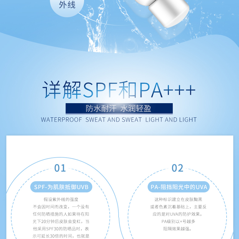 華廈防曬補(bǔ)水噴霧適用任何膚質(zhì)。雙重防曬噴霧,可以有效的防止陽(yáng)光中的UVA UVB射線的侵害,對(duì)陽(yáng)光敏感的肌膚尤其適用。低過(guò)敏性,不含防腐劑經(jīng)皮膚科醫(yī)師臨床測(cè)試;無(wú)香精,不含酒精,不生粉刺配方,防水配方。