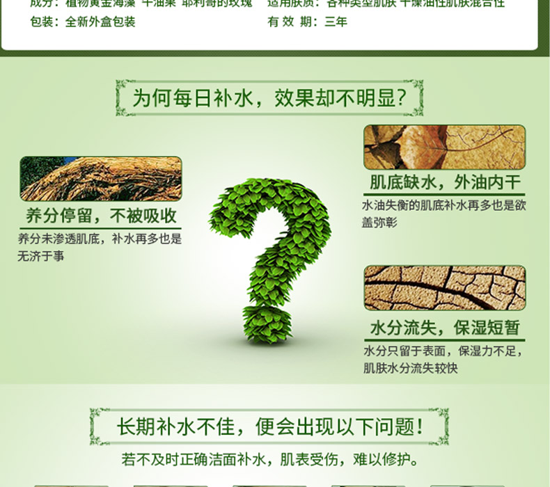 為什么要用植物綠洲的護(hù)膚品呢?現(xiàn)在市面上護(hù)膚品分為兩大分支,化學(xué)護(hù)膚品與植物護(hù)膚品。哪個更具有優(yōu)勢,更有效? 化學(xué)護(hù)膚品注重指標(biāo),利用高科技手段及人工合成的化學(xué)物質(zhì)力求在短時間內(nèi)解決皮膚的各種問題。因此,我們會在化學(xué)護(hù)膚品的廣告上看到“連續(xù)使用多少天迅速美白或撫平皺紋”之類讓人滿懷希望的宣傳語,比較適合缺乏耐心,渴求效果即使見效的朋友。但是肌膚在吸收營養(yǎng)成分時,可能會同時吸收有害的化學(xué)物質(zhì),在安全方面稍微遜色,且讓皮膚產(chǎn)生依賴性。植物綠洲保濕護(hù)膚品性質(zhì)溫和,更注重于治本。通過植物成分對肌膚底層進(jìn)行調(diào)理,提升自身的修復(fù)機(jī)能并喚醒肌膚細(xì)胞的生長因子,從而讓肌膚恢復(fù)健康,當(dāng)然這個改變不可能在朝夕之間完成,需要一點(diǎn)時間。