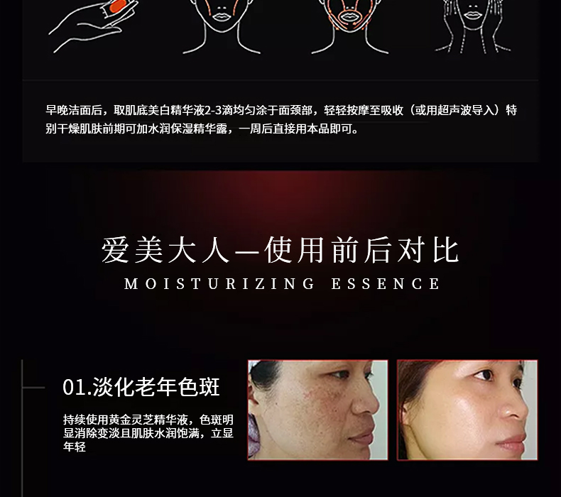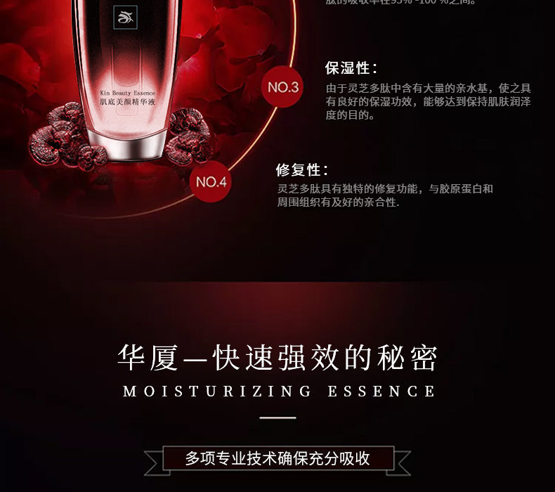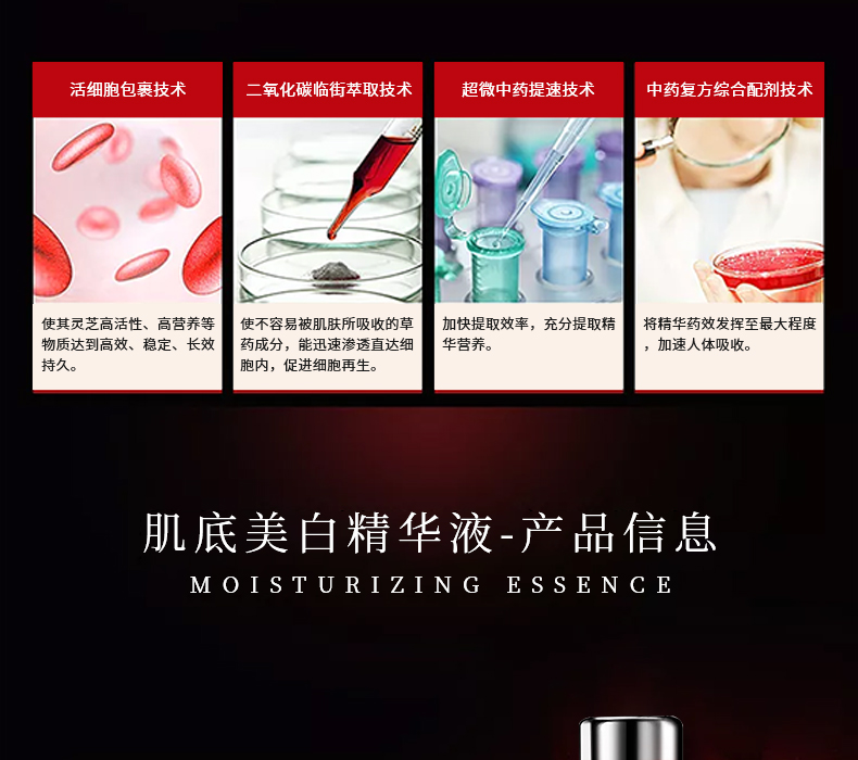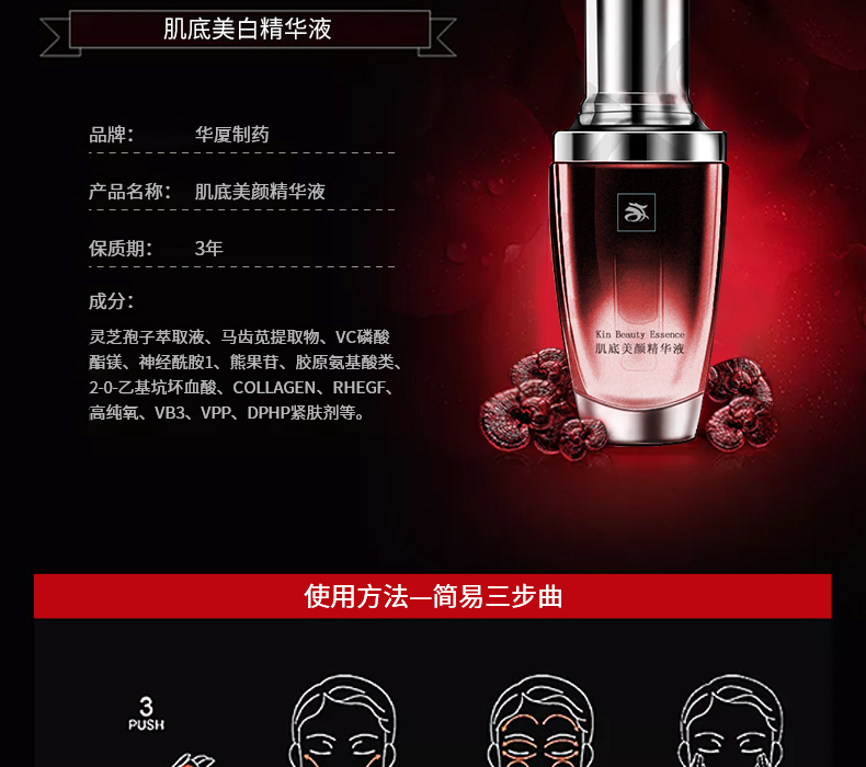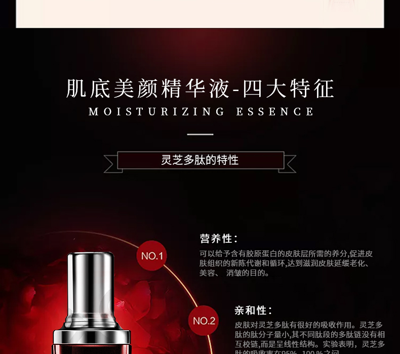2營養(yǎng):肌底美顏精華液對皮膚的滲透性強,可透過角質(zhì)層與皮膚上皮細(xì)胞結(jié)合,改善皮膚細(xì)胞生存環(huán)境和促進新陳代謝,以達到滋潤皮膚的目的。