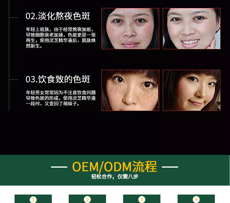 3美白:肌底美顏精華液可抑制羅氨酸酶的活性,減少色素的生成。在改善脢暗膚色美白肌膚,修復(fù)嫩膚等方面有很好的效果。
