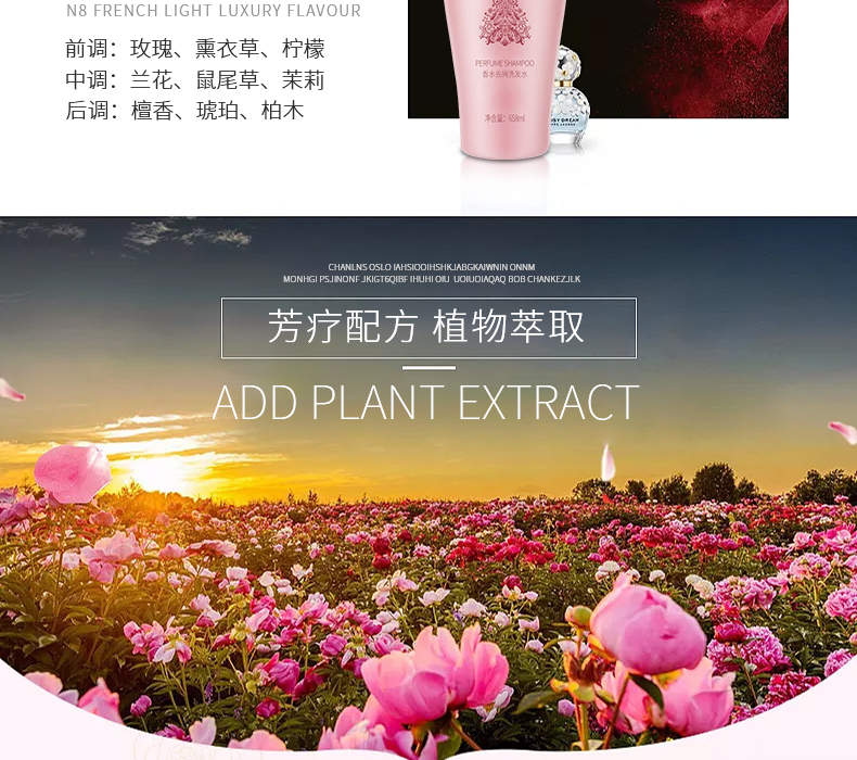 香水去屑洗發(fā)水,法國香水調(diào)配師調(diào)香,法國輕奢調(diào)香,濃郁又不會很烈,淡雅悠長,相信每一個女人都會喜歡的味道。香味能持續(xù)24小時以上。屬于滋潤型的成分,洗完后頭發(fā)的干枯毛躁現(xiàn)象得到明顯的改善。