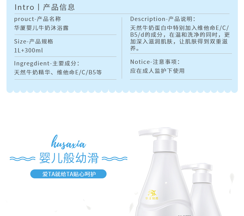 華廈生物旗下產(chǎn)品種類很多包括化妝品,面部護(hù)理,身體護(hù)理,頭發(fā)護(hù)理,和化妝工具等。尤其是嬰兒牛奶沐浴露產(chǎn)品,能使肌膚從內(nèi)到外補(bǔ)充足夠水分,使皮膚實(shí)現(xiàn)光滑嫩白。最重要的是,它所含的成分全部純天然,沒(méi)有任何化學(xué)物質(zhì),就連孕婦媽媽、哺乳期都可以使用。