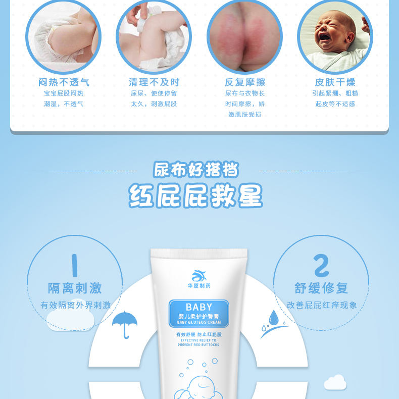 2、華廈嬰兒柔護護臀膏有效舒緩尿疹引起的發(fā)紅與刺癢,改善屁屁紅癢現(xiàn)象,使寶寶的肌膚恢復(fù)幼滑。