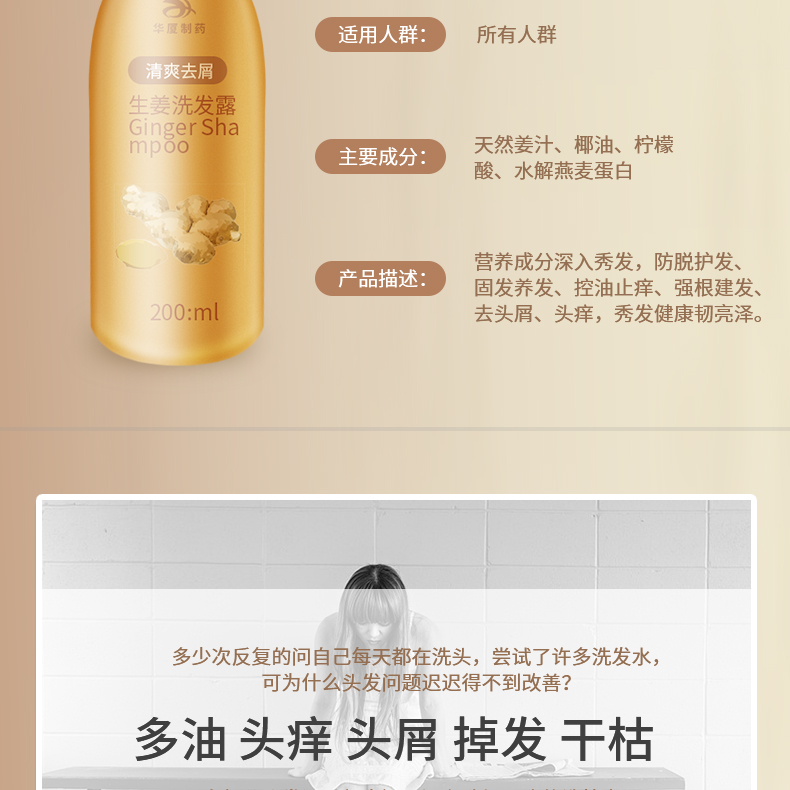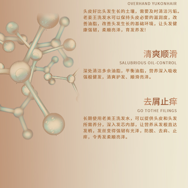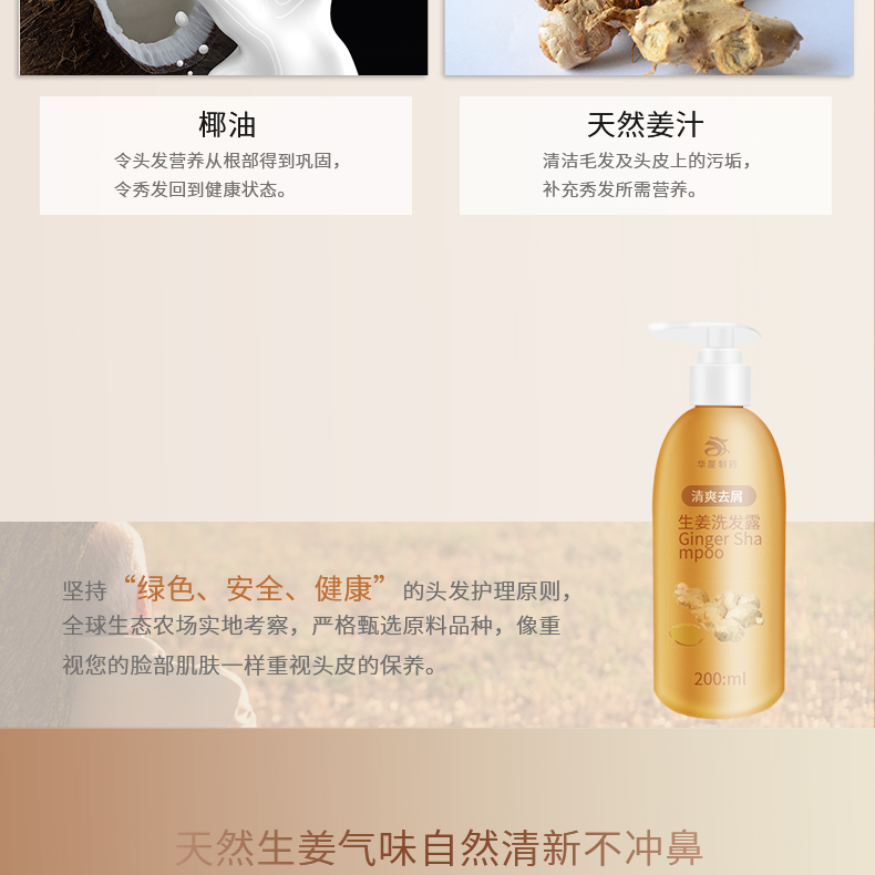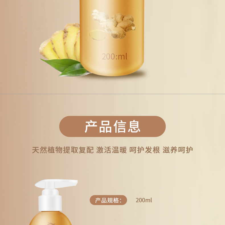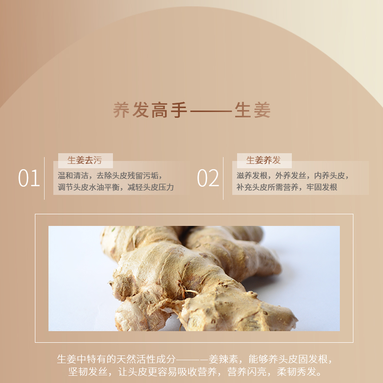 第二點(diǎn),生姜洗發(fā)水中的生姜成分連同其他重要成分能夠深入毛囊,為黑發(fā)再生提供充足的
