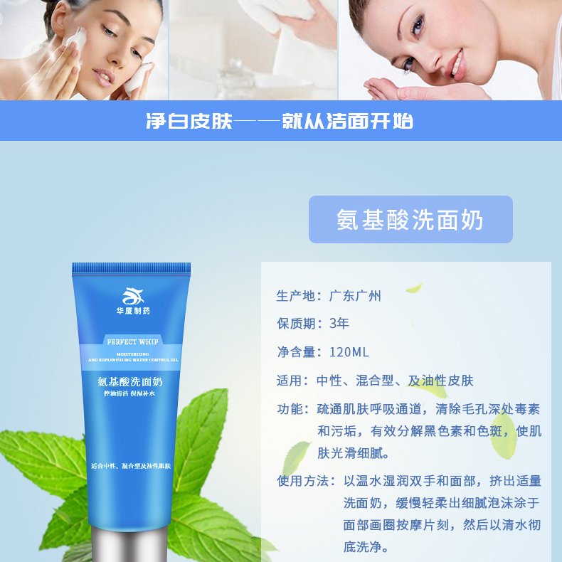 華廈氨基酸洗面奶適合中性混合型、油性等膚質(zhì),并且特別適合敏感肌使用,溫和清潔平衡油脂。不會像普通堿性洗面奶一樣出現(xiàn)發(fā)干發(fā)紅、發(fā)熱發(fā)癢等現(xiàn)象。所以說氨基酸洗面奶適合幾乎所有膚質(zhì)長期使用。