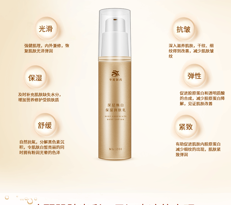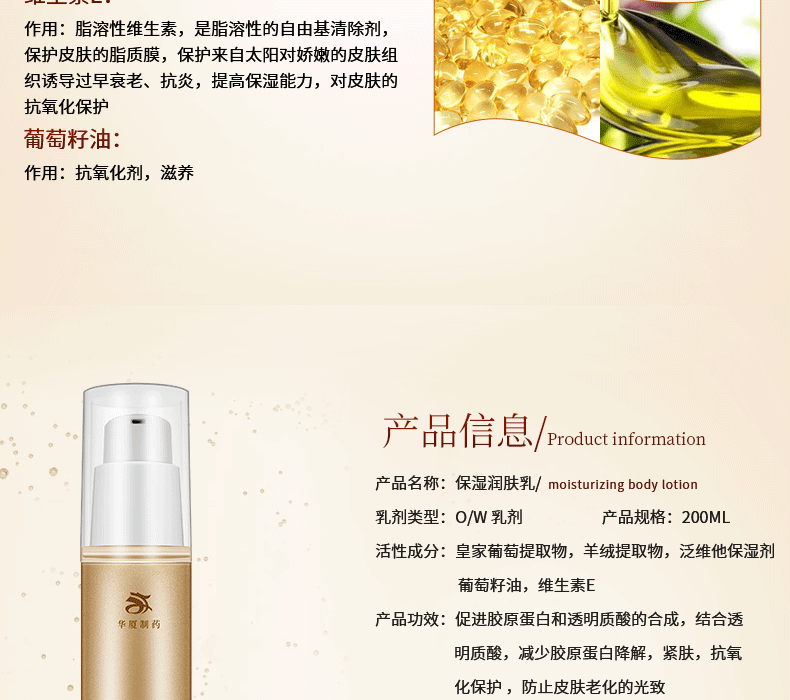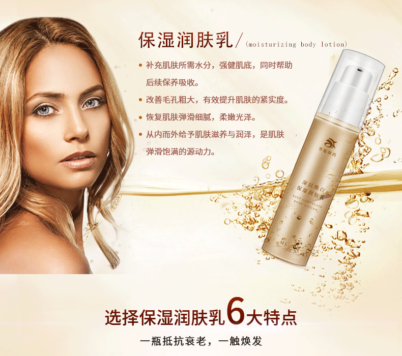 保濕潤(rùn)膚乳含豐富的葡萄提取物,原花青素、單寧酸、糖分、多糖類等滋潤(rùn)營(yíng)養(yǎng)成分,保濕滋潤(rùn)皮膚的同時(shí),補(bǔ)充肌膚所需水分,保持肌膚動(dòng)態(tài)水平衡,使肌膚恢復(fù)如絲般的柔嫩潤(rùn)滑,持續(xù)使用更令肌膚白皙細(xì)嫩。美白滋潤(rùn)皮膚的同時(shí),補(bǔ)充肌膚所需水分,保持肌膚動(dòng)態(tài)水平衡,使肌膚恢復(fù)如絲般的柔嫩潤(rùn)滑,