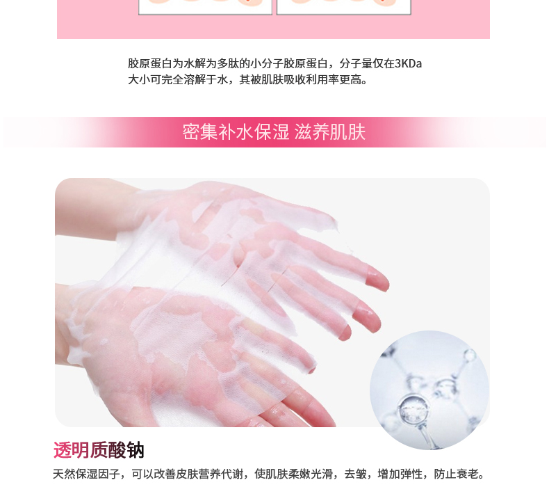 99%的肌膚問(wèn)題都是肌膚缺水引起的,美白保濕面膜中添加了透明質(zhì)酸鈉,天然保濕因子,可以改善皮膚營(yíng)養(yǎng)代謝,使肌膚柔嫩光滑,去皺,增加彈性,延緩衰老。