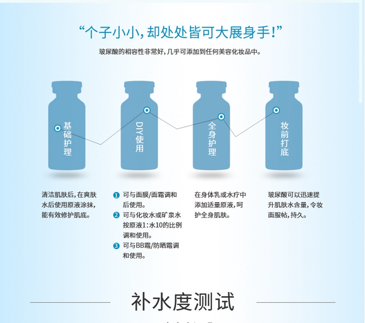 華廈制藥所生產(chǎn)的水潤保濕精華露也稱水潤保濕爽膚水,其中添加了透明質酸,透明質酸是目前發(fā)現(xiàn)的自然界中保濕性最好的物質。水潤保濕精華露的作用就在于再次清潔以恢復肌膚表面的酸堿值,并調理角質層,使肌膚更好地吸收,并為使用保養(yǎng)品作準備。水潤保濕精華露滲透入肌膚后會與肌膚融為一體、流暢自如,像血液一樣流暢自如。