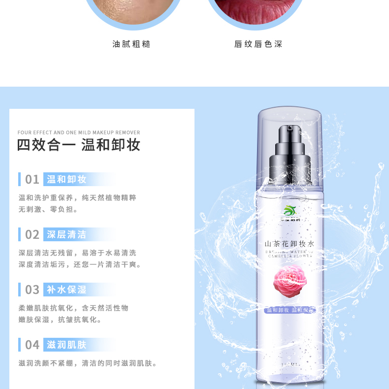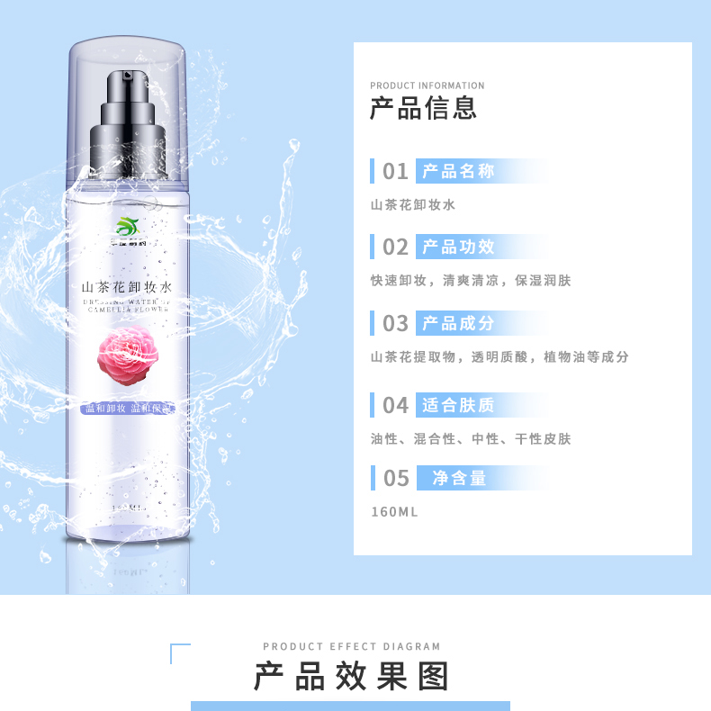 山茶花卸妝水不含皂基,PH值5,呈弱酸性,改善皮脂氧化變硬,阻塞毛孔等油性問(wèn)題肌膚狀況。