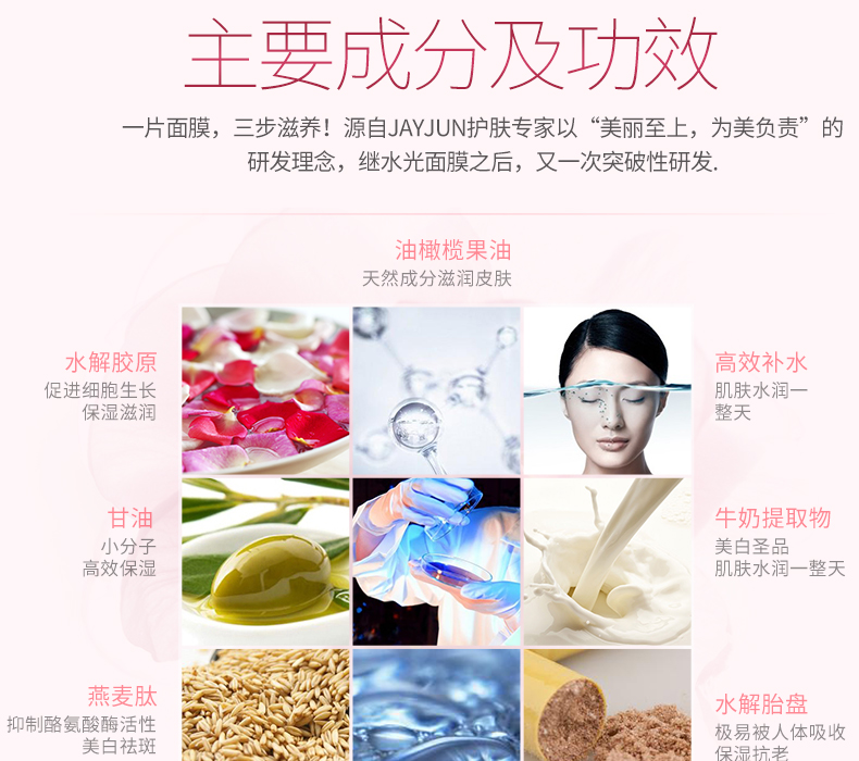 可防止皮膚干燥、老化,使皮膚光澤、濕潤、細膩。可治療面部粉刺或小疙瘩。對面部的斑點粉刺和痤瘡有一定的減輕作用。
