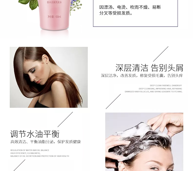 香水去屑洗發(fā)水,法國香水調(diào)配師調(diào)香,法國輕奢調(diào)香,濃郁又不會很烈,淡雅悠長,相信每一個女人都會喜歡的味道。香味能持續(xù)24小時以上。屬于滋潤型的成分,洗完后頭發(fā)的干枯毛躁現(xiàn)象得到明顯的改善。