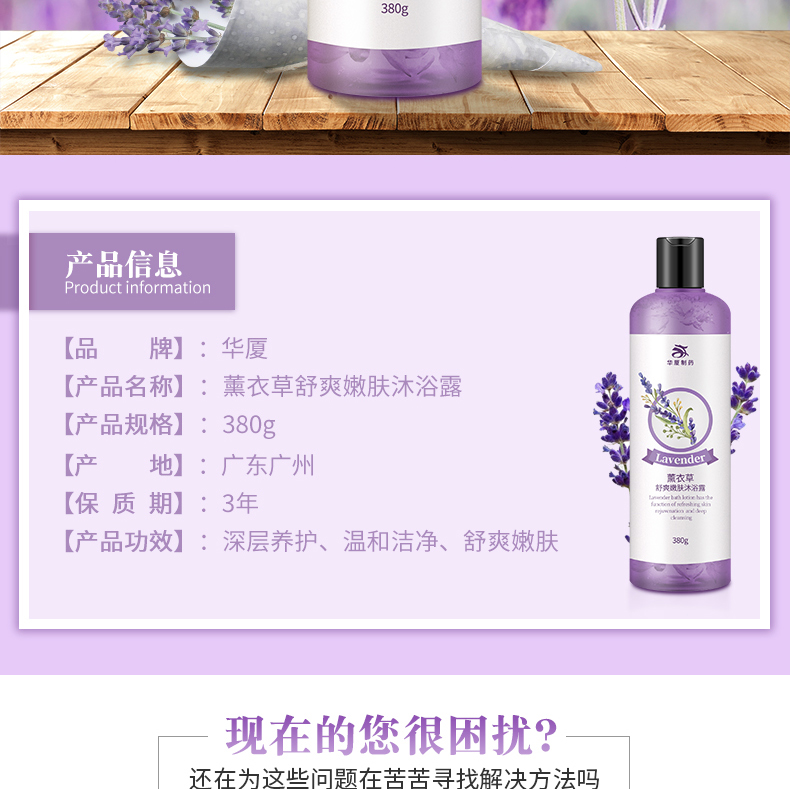 華廈薰衣草舒爽嫩膚沐浴露所使用原料全為天然食品級(jí),無(wú)毒安全,能有效抑制有害細(xì)菌的滋長(zhǎng),增長(zhǎng)你的免疫能力。享受花瓣沐浴的香薰,增加沐浴情趣,讓你的肌膚更滋潤(rùn)光滑。